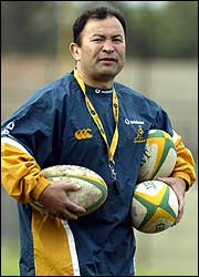 Eddie Jones, entrenador de los Wallabies australianos, durante la primera práctica del equipo tras arribar a la Argentina