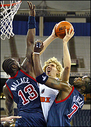 Dirk Nowitzki, de Alemania, fue demasiado para todos en el torneo, incluyendo los estadounidenses Wallace y O´Neal.