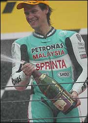 En esta carrera de Portugal, en 250cc., perdieron los que arriesgaron de más. Sólo el español Fonsi Nieto, con Aprilia, arriesgó y ganó. Aunque él tenía un motivo especial: si no ganaba perdía gran parte de sus chances de pelear la punta del Mundial con el actual líder, el italiano Marco Melandri, quien también corre con Aprilia.