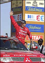 Hiroshi Masuoka festeja una victoria que parecía destinada a Stephane Peterhansel