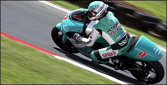 Además de Pedrosa y Barberá, su compañero de escudería, el madrileño Pablo Nieto fue otro de los destacados de la más pequeña de las cilindradas, la única en la que todavía queda por dirimir el título mundial entre el francés Arnaud Vincent (Aprilia) y el sanmarinense Manuel Poggiali (Gilera).