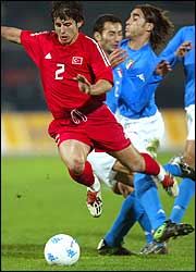 Para la ocasión Trapattoni recurrió a un clásico y "cuadrado" esquema 4-4-2, pero los turcos encontraron algún espacio entre las espaldas de Di Biagio y los centrales defensivos y de ahí llegó el gol de Emre, con una percusión vertical realmente muy bonita, cerrada con un certero disparo de izquierda en el ángulo superior derecho del arco defendido por Gianluigi Buffon, que sin embargo contó con la "complicidad" de defensores siempre con un instante de retardo en los cierres.