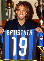 "Deseo ganar el título liguero. El tiempo que estaré aquí, cinco meses, un año ...., no lo he pensado, pues ahora mismo no me pasa esto por la cabeza", dijo Batistuta sobre su periodo como interista.