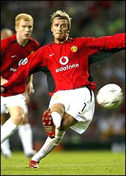El penal de David Beckham terminará en la red; el Manchester United no tuvo problemas en meterse en la UEFA Champions League