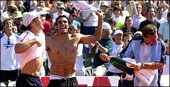 En el primer caso, su pobre tarea fue ayudada por el hecho de que Gaudio fue una aplanadora. Así, el dueño de casa extendió a 13 partidos su invicto como local en la Davis, habiendo perdido sólo un set, mientras que ganó 34. Y se tomó la revancha de su única derrota copera, cuando el año pasado desaprovechó una ventaja de 5-2 y dos match-points en el quinto set contra Kafelnikov en Moscú.