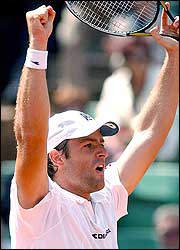 El ruso Marat Safin, cuarto cabeza de serie, consiguió una agónica victoria ante el defensor del título, el argentino Gastón Gaudio, por 6-4, 4-6 y 7-5 en dos horas y 44 minutos.