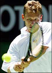El argentino David Nalbandian jugó un pésimo partido y cayó en cuatro sets frente al alemán Rainer Schuettler en cuartos de final. El rival del alemán en semifinales es el estadounidense Andy Roddick que, en un memorable partido, venció al marroquí Younes El Aynaoui