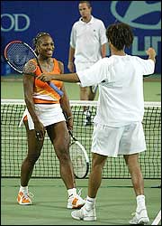 Los estadounidenses Serena Williams y James Blake acaban de ganar el dobles ante Bélgica y son finalistas; en el fondo, sufre Xavier Malisse