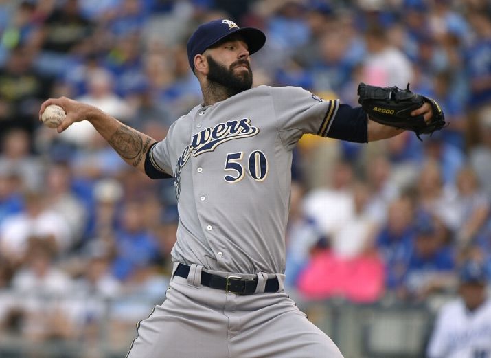 KANSAS CITY, MO - JUNE 17: Mike Fiers #50 of the Milwaukee Brewers throws in the first inning against the Kansas City Royals at Kauffman Stadium on June 17, 2015 in Kansas City, Missouri. (Photo by Ed Zurga/Getty Images)