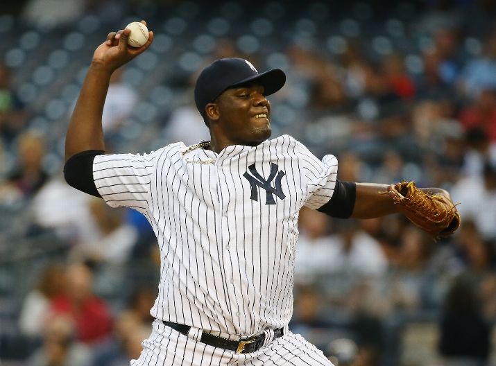 NEW YORK, NY - JUNE 17: Michael Pineda #35 of the New York Yankees pitches against the Miami Marlins during their game at Yankee Stadium on June 17, 2015 in New York City. (Photo by Al Bello/Getty Images)