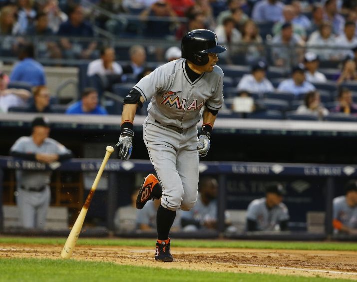 NEW YORK, NY - JUNE 17: Ichiro Suzuki #51 of the Miami Marlins grounds out in the second inning against the New York Yankees during their game at Yankee Stadium on June 17, 2015 in New York City. (Photo by Al Bello/Getty Images)