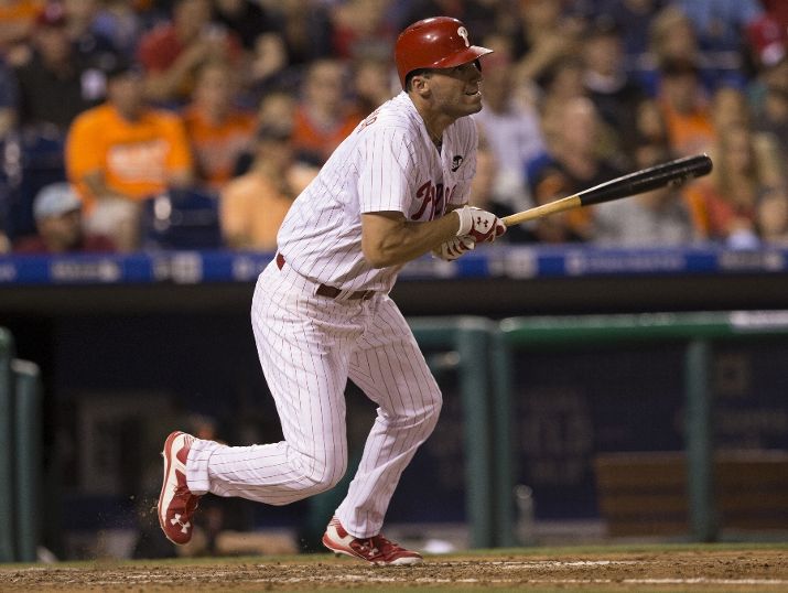 PHILADELPHIA, PA - JUNE 17: Jeff Francoeur #3 of the Philadelphia Phillies grounds into a game ending double play in the bottom of the ninth inning against the Baltimore Orioles on June 17, 2015 at the Citizens Bank Park in Philadelphia, Pennsylvania. The Orioles defeated the Phillies 6-4. (Photo by Mitchell Leff/Getty Images)