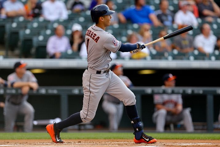 DENVER, CO - JUNE 17: Carlos Correa #1 of the Houston Astros watches his two-run home run in the first inning against the Colorado Rockies during Interleague play at Coors Field on June 17, 2015 in Denver, Colorado. (Photo by Justin Edmonds/Getty Images)