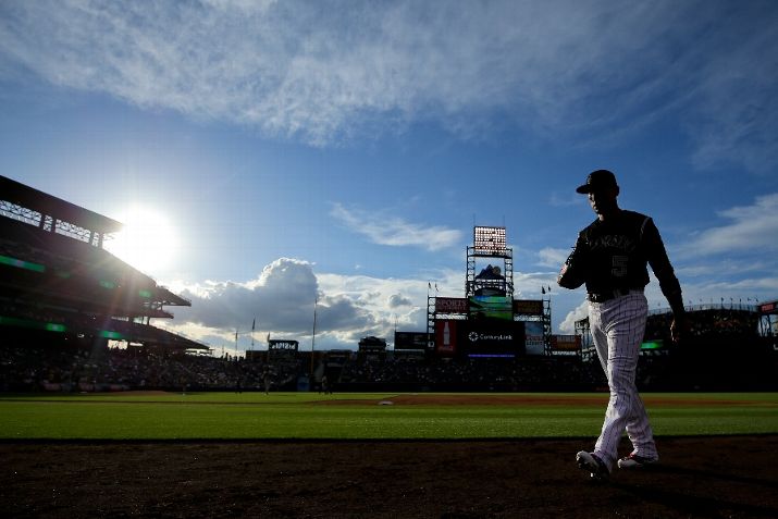 DENVER, CO - JUNE 17: Right fielder Carlos Gonzalez #5 of the Colorado Rockies walks off the field in the middle of the first inning against the Houston Astros during Interleague play at Coors Field on June 17, 2015 in Denver, Colorado. (Photo by Justin Edmonds/Getty Images)