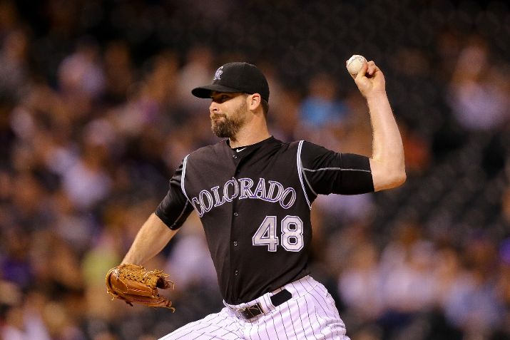 DENVER, CO - JUNE 17: Boone Logan #48 of the Colorado Rockies delivers to home plate in the ninth inning against the Houston Astros during Interleague play at Coors Field on June 17, 2015 in Denver, Colorado. (Photo by Justin Edmonds/Getty Images)