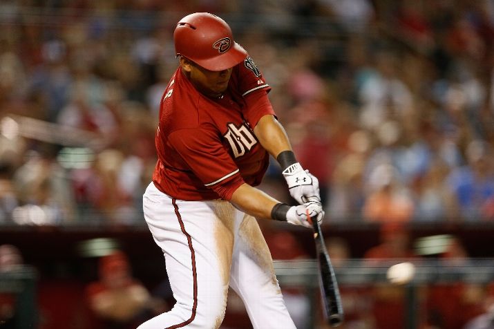 PHOENIX, AZ - JUNE 17: Yasmany Tomas #24 of the Arizona Diamondbacks hits a RBI triple against the Los Angeles Angels during the third inning of the MLB game at Chase Field on June 17, 2015 in Phoenix, Arizona. (Photo by Christian Petersen/Getty Images)