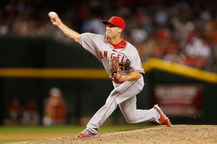 PHOENIX, AZ - JUNE 17: Relief pitcher Trevor Gott #62 of the Los Angeles Angels pitches against the Arizona Diamondbacks during the seventh inning of the MLB game at Chase Field on June 17, 2015 in Phoenix, Arizona. (Photo by Christian Petersen/Getty Images)