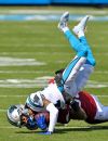 CHARLOTTE, NORTH CAROLINA - OCTOBER 04: Jordan Hicks #58 of the Arizona Cardinals tackles Robby Anderson #11 of the Carolina Panthers during the first quarter of their game at Bank of America Stadium on October 04, 2020 in Charlotte, North Carolina. (Photo by Grant Halverson/Getty Images) *** BESTPIX ***