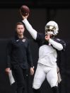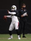 GLENDALE, ARIZONA - SEPTEMBER 02: Quarterback Kyler Murray #1 of the Arizona Cardinals throws a pass in front of head coach Kliff Kingsbury during a NFL team training camp at State Farm Stadium on September 02, 2020 in Glendale, Arizona. (Photo by Christian Petersen/Getty Images)