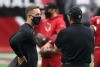 GLENDALE, ARIZONA - SEPTEMBER 20: (L-R) Head coaches Kliff Kingsbury of the Arizona Cardinals and Ron Rivera of the Washington Football Team talk before the NFL game at State Farm Stadium on September 20, 2020 in Glendale, Arizona. (Photo by Christian Petersen/Getty Images)