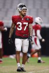 GLENDALE, ARIZONA - SEPTEMBER 02: Running back D.J. Foster #37 of the Arizona Cardinals warms-up during a NFL team training camp at State Farm Stadium on September 02, 2020 in Glendale, Arizona. (Photo by Christian Petersen/Getty Images)