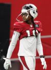 GLENDALE, ARIZONA - AUGUST 28: Wide receiver DeAndre Hopkins #10 of the Arizona Cardinals warms-up during the Red & White Practice at State Farm Stadium on August 28, 2020 in Glendale, Arizona. (Photo by Christian Petersen/Getty Images)