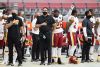 GLENDALE, ARIZONA - SEPTEMBER 20: Head coach Ron Rivera (C) of the Washington Football Team stands for the national anthem as strong safety Landon Collins #26 holds his arm up before an NFL game against the Arizona Cardinals at State Farm Stadium on September 20, 2020 in Glendale, Arizona. (Photo by Christian Petersen/Getty Images)